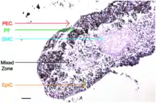 Adipocyte-depleted stromal vascular fraction (SVF) containing adipose stromal cells (ASC), endothelial cells, and infiltrating leukocyte derived from mouse white adipose tissue (WAT) were cultured in 3D. This revealed organoids striking in hierarchical organization with distinct capsule and internal large vessel-like structures lined with endothelial cells, as well as perivascular localization of ASC.[16]