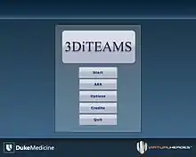 3DiTeams (also known as 3Di TEAMS) is a first person serious video game developed by the Duke University Medical Center and Virtual Heroes and used for medical education and team training.[3] The 3DiTeams Project was conceived by Dr. Jeffrey M. Taekman and Jerry Heneghan and is managed by the Human Simulation and Patient Safety Center at Duke University Medical Center, Durham, North Carolina.