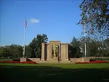 The 2nd Division was first constituted on 21 September 1917 in the Regular Army.[6][7][8][9] It was organized on 26 October 1917 at Bourmont, Haute Marne, France.[10] At the time of its activation, the Indianhead Division was composed of the 3rd Infantry Brigade, which included the 9th Infantry Regiment; the 23rd Infantry Regiment and the 5th Machine Gun Battalion; the 4th Marine Brigade, which consisted of the 5th Marine Regiment, the 6th Marine Regiment and the 6th Machine Gun Battalion; 2nd Brigade of field artillery; and various supporting units.[3][4] Twice during World War I the division was commanded by US Marine Corps generals, Brigadier General Charles A. Doyen and Major General John A. Lejeune (after whom the Marine Corps Camp in North Carolina is named), the only time in U.S. military history when Marine Corps officers commanded an Army division.[10]