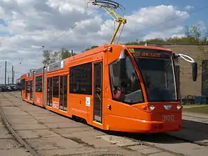 The 71-630 is a proposed Russian low floor tram intended for Moscow and Riga. These rail vehicles are produced by Ust'-Katav Vagon-building plant (UKVZ, УКВЗ, Усть-Катавский Вагоностроительный Завод имени С. М. Кирова - Russian abbreviature and full name). Only one car was built in 2006. It was tested with passengers in Moscow in 2008–2010, and stay in Krasnopresnenskoye depot.[1]