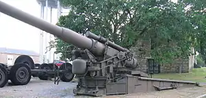 The 8-inch gun M1 was a 203 mm towed heavy gun developed in the United States. At 32,584 m (35,635 yd), it had the longest range of any US Army field artillery weapon in World War II. It was also used in small numbers by the British Army.