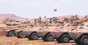 8 South African Infantry Battalion is a mechanized infantry unit of the South African Army.[2] The battalion is equipped with Ratel Infantry Fighting Vehicles (IFV) used for fast transport and combat mobility across rough ground. Support weapons for mechanized infantry are also provided with motorized transport, or are built directly into these IFVs, in order to keep pace with the IFVs in combat. The battalion was raised at Upington in the Northern Cape in 1973, and assigned to the Infantry Formation.