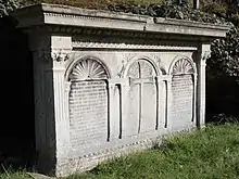 A wide stone in a combination of classical styles with the then fashionable Arts and Crafts decoration was erected over the tomb. To Mundella's name was added the inscription: "Loving knowledge for its own sake, he strove to diffuse it among his countrymen. He laboured for industrial peace, and the welfare of the children of the poor."
