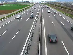 After the construction of the third Baregg Tunnel tube, the traffic jams in this area were reduced, but the Gubrist Tunnel remains with the old capacity as a new point of heavy traffic. The A1 motorway is connected via a taxiway at the hangar 5 with the airfield of Payerne Air Base and can, if necessary, used as runway for take off - and landing. However, this possibility has never been used since the construction of the highway.[1]
