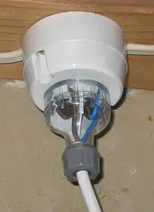 If required, such dual socket-outlets can be obtained (at additional cost) using insulation displacement as a means of connecting to the supply conductors, as can be seen in the illustration - below right.[8][9] The benefits claimed for their use in these applications include up to 50% faster installation, due to the reduction in the stripping, twisting and screwing down processes.