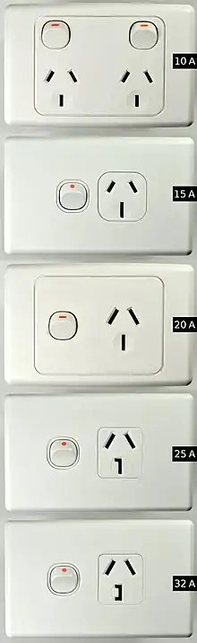 Hence, a 10 A plug will fit into all of the five types of socket outlets, a 15 A plug will fit into all except a 10 A (and so on) while a 32 A plug will fit only into a 32 A socket outlet.