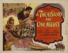 A Thousand and One Nights is a 1945 Tongue-in-Cheek American adventure fantasy film set in the Baghdad of the One Thousand and One Nights directed by Alfred E. Green and starring Evelyn Keyes, Phil Silvers, Adele Jergens and Cornel Wilde.[1]