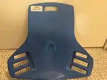 It was an almost flat, saddle-like piece of thermoformed plastic, about 2 by 3 feet, with handles and a depression for the tailbone. The product was designed to protect the lower back during sit-ups. Colonello said in an interview in 2014 that the aim was to help people such as farmers consulting his practice in Ontario to do some exercise to develop core strength. He made one prototype and tested the product in his clinical practice before being approached to market the product.[4]