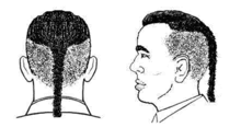 Traditionally, Abenaki men kept their hair long and loose. When a man found a girlfriend, he would tie his hair. When he married, he would attach the hair of the scalp with a piece of leather and shave all but the ponytail. The modernized spiritual version has the man with a girlfriend tying his hair and braiding it. When he marries, he keeps all his hair in a braid, shaving only the side and back of the head. The spiritual meaning surrounding this cut is most importantly to indicate betrothal or fidelity as a married Abenaki man. In much the same way as the Christian marriage tradition, there is an (optional) exchange and blessing of wedding rings. These rings are the outward and visible sign of the unity of this couple.[35][36][37]