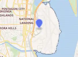 When Alexander purchased the Howson patent, the patent covered an 8,000-acre (3,200 ha) site (believed at the time of sale to contain only 6,000 acres (2,400 ha)) on the southwestern side of the Potomac River.[7][10] The site was about 2 miles (3.2 km) wide and extended along the Potomac from Hunting Creek (the southern boundary of the present City of Alexandria) to the present northern boundary of Arlington National Cemetery.[1][7][10][11]