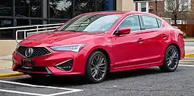 In September 2018, Acura revealed another facelift for the ILX. The ILX follows Acura's new design language, and incorporates the company's new "Diamond Pentagon" grille. The jewel-eye headlights are more sleek and so is the new front bumper. In the rear of the ILX, the taillights are more angular, and the license plate has been dropped from the trunk to the rear bumper. In the interior, the overall design has remained the same, although there are new seats, with the availability of red leather (only on the A-Spec), and an updated infotainment system. It is still the same system as before, but it is 30% faster.[8] AcuraWatch is now standard on all ILX's. The powertrain has remained the same for 2019.[8] The ILX A-Spec now makes the exterior look more aggressive. It comes with 18" wheels, red or black leather seats with ultrasuade inserts, aluminum pedals, and more. Pricing for the 2019 model is less than the previous model year, starting at $25,900.[8]