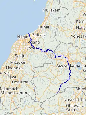 The Agano River (阿賀野川, Agano-gawa) is a river in the Hokuriku region of Honshu, Japan. It is also called the Aga River or the Ōkawa River in Fukushima.