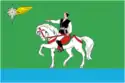 In August 2006, the Council of the Agryzsky municipal district approved its new heraldic insignia. The central figure of the coat of arms is represented by a rider on a white horse harnessed with a red bridle depicted on a green background. The figure is dressed in a white shirt, pants, a black sleeveless jacket and boots with a silver Tatar skullcap (kelapush) on his head. The rider personifies the legendary founder of the village, the warrior Agryz (Egerzhe), who points forward with his right hand as if predicting the future of the region. His figure is accompanied by a silver eight-pointed star with a wing — an allegorical depiction of the wind rose. The golden wing on the coat of arms is a symbol of the railway and Agryz station as a major railway junction. The blue bottom line of the coat of arms symbolizes the waters of the Nizhnekamsk reservoir, while the green field emphasizes the role of agriculture in the regional economy. The flag is based on heraldic elements of the coat of arms.[10] In the flag, white represents clarity and reconciliation, red for courage, black for eternity and wisdom, green means health and nature, and blue honor and immortality. The flag has a width-to-length ratio of 2:3.[11]