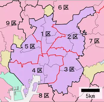 Aichi 5th district is a constituency of the House of Representatives in the Diet of Japan (national legislature). It is located in Aichi Prefecture and consists of Nagoya's Nakamura and Nakagawa wards, the cities of Kiyosu and Kitanagoya and the Nishikasugai district. As of 2016, 428,423 eligible voters were registered in the district.[1] The current representative of this district is Vice Speaker Hirotaka Akamatsu of the Constitutional Democratic Party.