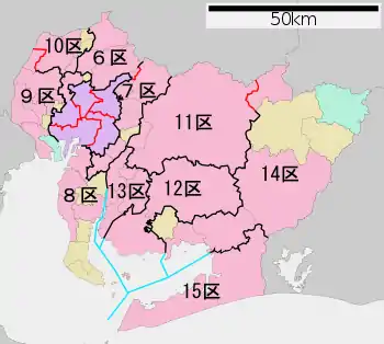 ![]() Numbered map of Aichi Prefecture single-member districts | |