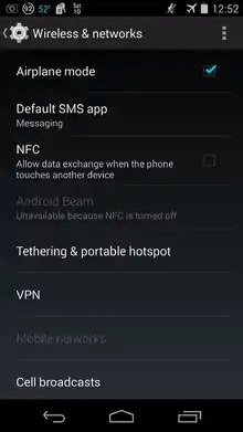 A comma separated list of radios that need to be disabled when airplane mode is on. This overrides WIFI_ON and BLUETOOTH_ON, if Wi-Fi and Bluetooth are included in the comma separated list.