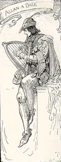 Alan-a-Dale (first recorded as Allen a Dale; variously spelled Allen-a-Dale, Allan-a-Dale, Allin-a-Dale, Allan A'Dayle etc.) is a figure in the Robin Hood legend. According to the stories, he was a wandering minstrel who became a member of Robin's band of outlaws, the "Merry Men".