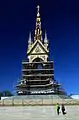 The popularity of the Prince Consort led to the creation of several "Albert Memorials" around the United Kingdom. The Kensington memorial was not the earliest; the first to be erected was Thomas Worthington's Albert Memorial in Albert Square, Manchester, unveiled in 1865.[4] Both memorials present the figure of Prince Albert enclosed within a Gothic ciborium, and the similarities of design have been remarked on.[5]