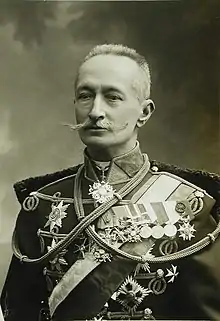 Aleksey Alekseyevich Brusilov (Russian: Алексе́й Алексе́евич Бруси́лов, romanized: Alekséj Alekséevič Brusílov; 1 September [O.S. 19 August] 1853 – 17 March 1926) was a Russian general most noted for the development of new offensive tactics used in the 1916 Brusilov Offensive, which was his greatest achievement. The innovative and relatively successful tactics used were later copied by the Germans. Born into the aristocracy to a father who was also a general, Brusilov trained as a cavalry officer, but by 1914 he realized that cavalry was obsolete in the new style of warfare because of its vulnerability to machine gun and artillery. Historians portray him as the only First World War Russian general capable of winning major battles. However, his heavy casualties seriously weakened the Russian army, which was unable to replace its losses.[1]
