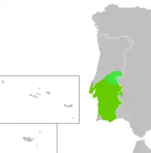 ![]() Distribution of Alentejan and Alto-Alentejan dialects