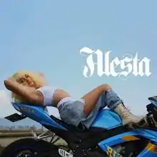 Following the release of Unlocked in 2014, Stan commenced working on Alesta the subsequent year at a Romanian music camp organized by Romanian composer Marius Moga; there she collaborated with three recording studios simultaneously.[6][9] The title of the record is an abbreviation of Stan's stage name, also meaning 'ready' in Turkish.[6][10][11] The accompanying artwork for the Japanese and other versions of the album show Stan posing in front of a black backdrop, with lettering displayed in white or red above her head.[6] Editions of Alesta released by Ego Records and Warner Bros. Records featured a photograph with her laying over a motorcycle sporting a blonde wig, white underwear and a distorted pair of blue jeans.[12][13][14]
