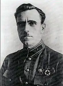 Alexander Sirotkin (August 6, 1890 – January 17, 1965) was a Soviet lieutenant general and division commander. He fought for the Imperial Russian Army in World War I. He received the Cross of St. George, the Order of St. Vladimir, the Order of St. Anna and the Order of Saint Stanislaus (Russian). After the October Revolution in November 1917, he went over to the Bolsheviks and fought for them in the subsequent civil war. He was awarded the Order of Lenin, the Order of the Red Banner, the Order of the Red Star and for his participation in the Great Patriotic War, the Order of Suvorov.