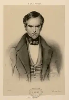 Alfred Johannot (March 21, 1800 – 1837) was a French painter and engraver born in Offenbach, Germany.[1] His family were French refugees who went to Germany after the Edict of Nantes was revoked. He started out as an engraver, and then came into being a professional painter in 1831. His work was collected by Louis Philippe I and was displayed at the Palace of Versailles. He often painted contemporary court and ceremonial themes, before moving into historical French subjects. Johannot designed the covers for the first illustrated French editions for numerous British writers such as Lord Byron. He died on 7 December 1837.[2]