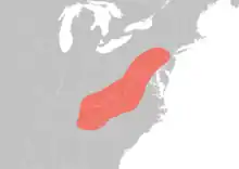Allegheny woodrats are mainly distributed along the Appalachian Mountains. They have historically been found as far north as Connecticut and possibly Massachusetts (where they are now extirpated), southeastern New York (extirpated), northern New Jersey, and northern Pennsylvania southwestward through western Maryland, Tennessee, Kentucky, West Virginia, northern and western Virginia to northeastern Alabama and northwestern North Carolina with isolated populations north of the Ohio River in southern Ohio (extirpated) and southern Indiana (reintroduced). The Tennessee River is generally accepted as the southern range limit.[16] There are no recognised subspecies. Fossils belonging to the species are known from mid Pleistocene deposits in Maryland and West Virginia.[3]