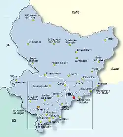 | Wikivoyage has a travel guide for Alpes-Maritimes. |