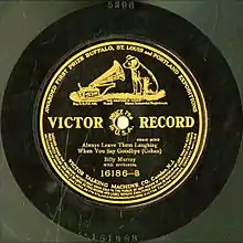 "Always Leave Them Laughing When You Say Goodbye" was a popular song, first published in 1904, and written by George M. Cohan. Today, the best known recording of the song is by Billy Murray, which was recorded in 1907 with Victor Records, and whose version has entered the public domain. Although very popular in the early 20th century, the song is almost completely forgotten today.