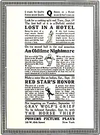 - Banner advertisement for 1911 films of Powers Moving Picture Company, The Billboard (Cincinnati, Ohio), September 16, 1911, p. 71. Retrieved June 16, 2020.