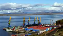 Anadyr is an important sea port on the Bering Sea and is connected to almost all major Russian Far Eastern seaports. Anadyr's Ugolny Airport serves major and minor cities in the Russian Far East with connections to Khabarovsk, Vladivostok, and Moscow, while Bering Air provides charter flights to Nome, Alaska in the United States. The airport is on the other side of the Anadyrsky Liman, and from January to May, transportation from the airport to Anadyr is by ice road.[12] In the summer there is a ferry which transports passengers across the Anadyr River to the airport,[35] but during spring and autumn when the river ice is melting and full of drifting ice floes, the only means of transportation to the airport is via helicopter.[35]