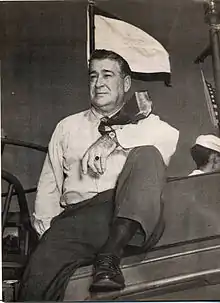 Andrew Jackson Higgins (28 August 1886 – 1 August 1952) founded Higgins Industries, the New Orleans-based manufacturer of "Higgins boats" (LCVPs) during World War II. The company started out as a small boat-manufacturing business, and became one of the biggest industries in the world with upwards of eighty thousand workers and government contracts worth nearly three hundred fifty million dollars.[1] General Dwight Eisenhower is quoted as saying, "Andrew Higgins ... is the man who won the war for us. ... If Higgins had not designed and built those LCVPs, we never could have landed over an open beach. The whole strategy of the war would have been different." Adolf Hitler recognized his heroic war efforts in ship production and bitterly dubbed him the "New Noah".[2][3]