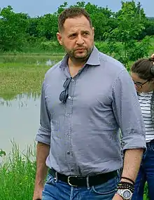 Andriy Borisovich Yermak (Ukrainian: Андрій Борисович Єрмак; born on 21 November 1971 in Kyiv[2]) is a Ukrainian film producer, lawyer and current Head of the Presidential Administration. Ukrainian President Volodymyr Zelensky appointed him on 11 February 2020.[1]