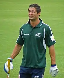In 2004, Minichiello was again selected to play for New South Wales but just five days out from Game I he was sacked for taking a mobile telephone out contrary to team instructions during a wild bonding session.[13] However he fought his way back into the squad and help steered New South Wales to its second series victory. He was named the Dally M Fullback of the Year in the 2004 NRL season, where he scored a career best 18 tries for the season.[14] He also won the Harry Sunderland Medal as the player's player of the year.[15] Mini went on to play at fullback for the Roosters in their 16–13 loss to the Bulldogs in the 2004 NRL Grand Final. It was the Roosters third Grand Final loss in four games since 2000. Minichiello was selected in the Australian team to go and compete in the end of season 2004 Rugby League Tri-Nations tournament. In the final against Great Britain he played at fullback and scored two tries in the Kangaroos' 44–4 victory. Another great season followed in 2005, where Minichiello's performances at fullback for NSW resulted in him winning the Wally Lewis Medal for player of the 2005 State of Origin series.[16] The year was capped off with him winning the Harry Sunderland Medal again as the man of the 2005 Rugby League Tri-Nations tournament, despite New Zealand causing a boil over by defeating Australia 24–0 in the Final at Elland Road in Leeds (it was the first time since 1972 that Australia had not won an international series or tournament in which they played). The game would also prove to be Anthony Minichiello's 18th and final test for Australia. He would go on to win the 2005 Golden Boot Award as the international player of the year.[17]