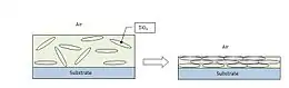 One of the newer additions to this ever growing market are nanoparticle based coatings. Silica particles are formed using the sol-gel method. The resulting silica particles have both reactive (Si-OH) and nonreactive (Si=O) groups on the surface. The reactive groups provide locations for further chemical processing, which allow you to change the surface properties of the nanoparticles. For anti-graffiti coatings, hydrophobic and oleophobic (oil-fearing) ligands are grafted onto the silica nanoparticles. Hydrophobic ligands are non-polar molecules such as hydrocarbon chains. Oleophobic ligands consist of polar molecules. Normally these two different types of molecules would phase separate in solution, for the same reason that water and oil do not mix. By chemically grafting the ligands onto the silica particles, this effect is counteracted. The effect is a coating that shows an equal dislike for both water-based and oil-based paints.[4]