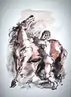 "Man and Horse" Ink and Watercolor 30" x 22 ½"