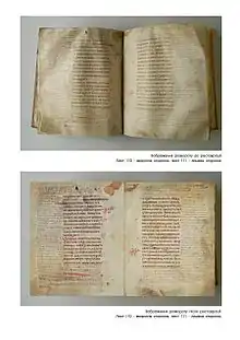 The Apostolus Christinopolitanus is a Cyrillic manuscript of the Acts and Epistles with commentary, written in Church Slavonic of the East Slavonic recension in the middle of the twelfth century. It takes its name from the town of Krystynopol (now Chervonohrad), where it was kept until 1908. The greater part of the manuscript (291 leaves), is now in the Historical Museum in Ľviv (MS 37); a further 8 leaves are in the National Library of the Ukraine in Kiev (MS VIII.3).[1]