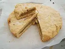 One of the more popular dishes is tiella, a slow-cooked dish layered with rice, potatoes and mussels.[20] This version originates from Bari, but there is plenty of local variation in the recipe, with different versions originating from Foggia, Taranto and the Salento. Some of these don't even include seafood.[40] Scapece is a fish dish from Gallipoli, Apulia which is notable for its preservation method. Similar to escabeche, fish is fried and then preserved in red wine vinegar with breadcrumbs and saffron to greatly extend its shelf life.[41] Some dishes use dried and salted cod (baccalà), one of the very few imported ingredients.[40]