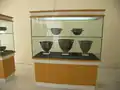 Exhibit of some of the terracotta statuettes of Artemis. They were found in large quantities in the small temple of Artemis at Kanoni in Corfu city.