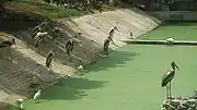 The remaining area makes up the free-range zone—an open area which makes up the bulk of the park and where animals such as deer and jackals are left to roam free. There are more than 500 deer of different varieties and an equal number of jackals in the free-range zone. In addition, there are four enclosures for deer—each housing about 30 animals.[27] Deer and jackals are found in equal numbers and are known for their fast-breeding ability, especially in their natural environment. The deer–jackal ratio is maintained by the 'natural method of selection'—allowing the stronger ones to prey on the weaker ones—a natural way of balancing the ecological system.