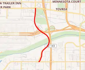 The expressway originally was supposed to connect to Loop 202 east of SR 143. But in 1989, Route 143 north of University Drive was realigned 1⁄4 mile (400 m) to the east, and SR 153 was realigned onto the old section of Route 143 between Sky Harbor International Airport and Washington Street. The unbuilt eastbound leg of SR 153 to Loop 202 was later constructed as SR 202 Spur.[3]