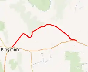State Route 66 (SR 66) is a surface road in the U.S. state of Arizona in Mohave and Coconino Counties. In 1914, the road was designated "National Old Trails Highway" but in 1926 was re-designated as U.S. Route 66.[2] In 1985, U.S. Route 66 was dropped from the highway system. Parts of the highway were either absorbed into I-40, turned over to the state (SR 66), or turned over to Yavapai County.