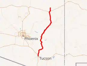 At its southern terminus, north of Tucson, the road is known as Oracle Road[4] until the final mile and a half when the road turns westward directly toward Interstate 10 and is called Miracle Mile Road,[4] named such in 1962.[5]