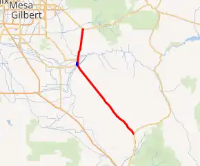 | | 136.03 | 218.92 | Hunt Highway west – Queen Creek | Eastern terminus of Hunt Highway | |