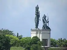 Arjuna was one of the five Pandava brothers of royal lineage, whose collective name derives from their father and heir to the Lunar dynasty, Pandu. However, Pandu was under a curse whereby he would die if he had sexual relations with a woman and thus his sons were born using a mantra given to Kunti by sage Durvasa during her maiden days. His wives—Madri and Kunti— invoked different gods and were blessed with children.[7] According to the legend, Arjuna was a demigod, who was born as a blessing after his mother Kunti invoked the god Indra on her husband's request.[8][9] Whilst the Devi Bhagavata epic records Arjuna as a reincarnation of a rishi called Nara, the Mahabharata makes no mention of this.[10]