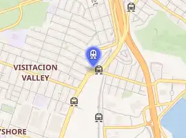 Arleta station is a light rail stop on the Muni Metro T Third Street line in the Visitacion Valley neighborhood of San Francisco, California on the south slope of Candlestick Hill. The station opened with the T Third Street line on January 13, 2007. It has a single island platform located in the median of Bayshore Boulevard between Arleta Avenue and Blanken Avenue, with access from crosswalks at both streets. The station is the closest Muni Metro stop to the Caltrain station at Bayshore station, which is 0.4 miles (0.64 km) to the south.