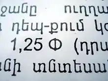 - Dram sign, Armeniapedia—free encyclopedia http://www.armeniapedia.org/index.php?title=Armenian_Dram_Sign