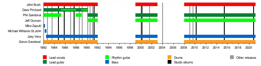 - Phil Sandoval – lead guitar (1990–present), rhythm guitar (1982–1985)