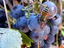 Within wine there are volatile and non-volatile compounds that contribute to the make up of a wine's aroma. During the fermentation and for the first few months of a wine's existence, chemical reactions among these compounds occur frequently and a wine's aroma will change more rapidly during this period than at any other point. As a wine ages and matures, changes and developments in aroma will continue to take place but at a slower and more gradual pace. Volatile aroma compounds are present in the skin and juice of a grape berry and will vary in composition according to the individual grape variety. It is theorized that the Vitis vine developed these compounds as an evolutionary tool to aid in procreation by attracting insects to assist with pollination and birds and other animals to eat the berries and disperse the seeds. The diverse spectrum of aromas associated with individual grape varieties is a reflection of the vine's adaptation to ecological conditions and competition among other plants.[4]